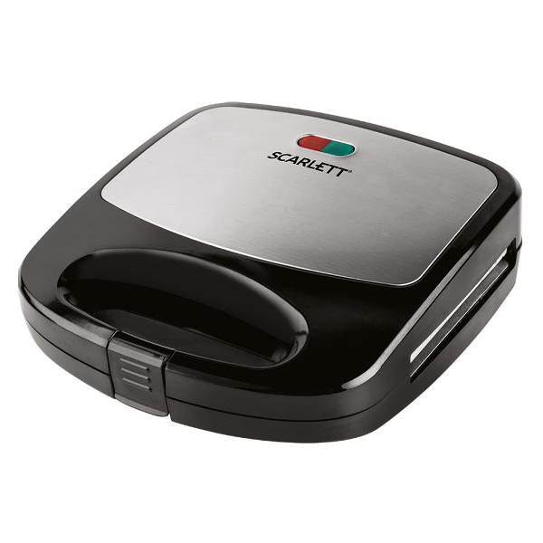 Scarlett SC-TM11038 — универсальное устройство, в котором можно приготовить горячие сэндвичи, толстые бельгийские вафли и печенье-орешки. Соответствующие сменные панели входят в комплект поставки. На корпусе есть два световых индикатора: один показывает, что устройство работает, второй оповещает о достижении оптимального уровня нагрева для начала приготовления.