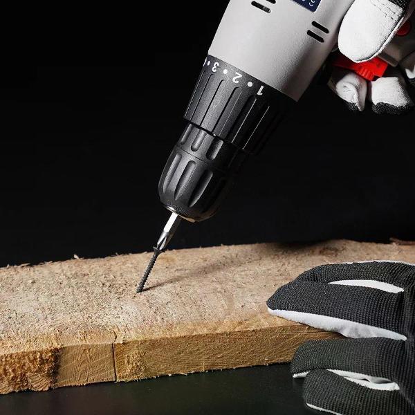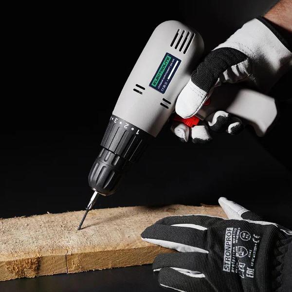 Диаметр патрона составляет 10 мм. Корпус изготавливается из ударопрочного пластика. Электродвигатель обладает медной обмоткой. Дрель оснащается двадцатью ступенями крутящего момента.