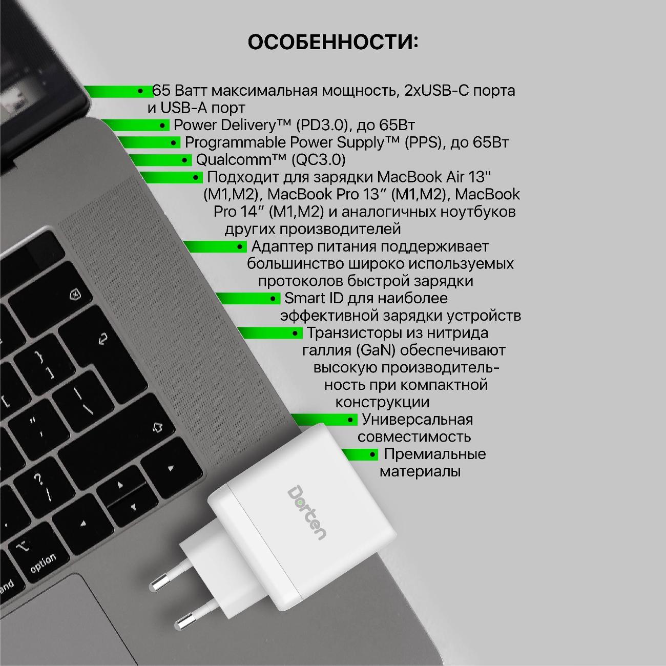 Вы можете купить Сетевое зарядное устройство Dorten 65W DN206800 White в магазинах М.Видео по доступной цене. Сетевое зарядное устройство Dorten 65W DN206800 White: подробное описание, фото и отзывы реальных покупателей, характеристики, возможность скачать инструкции и подобрать аксессуары.