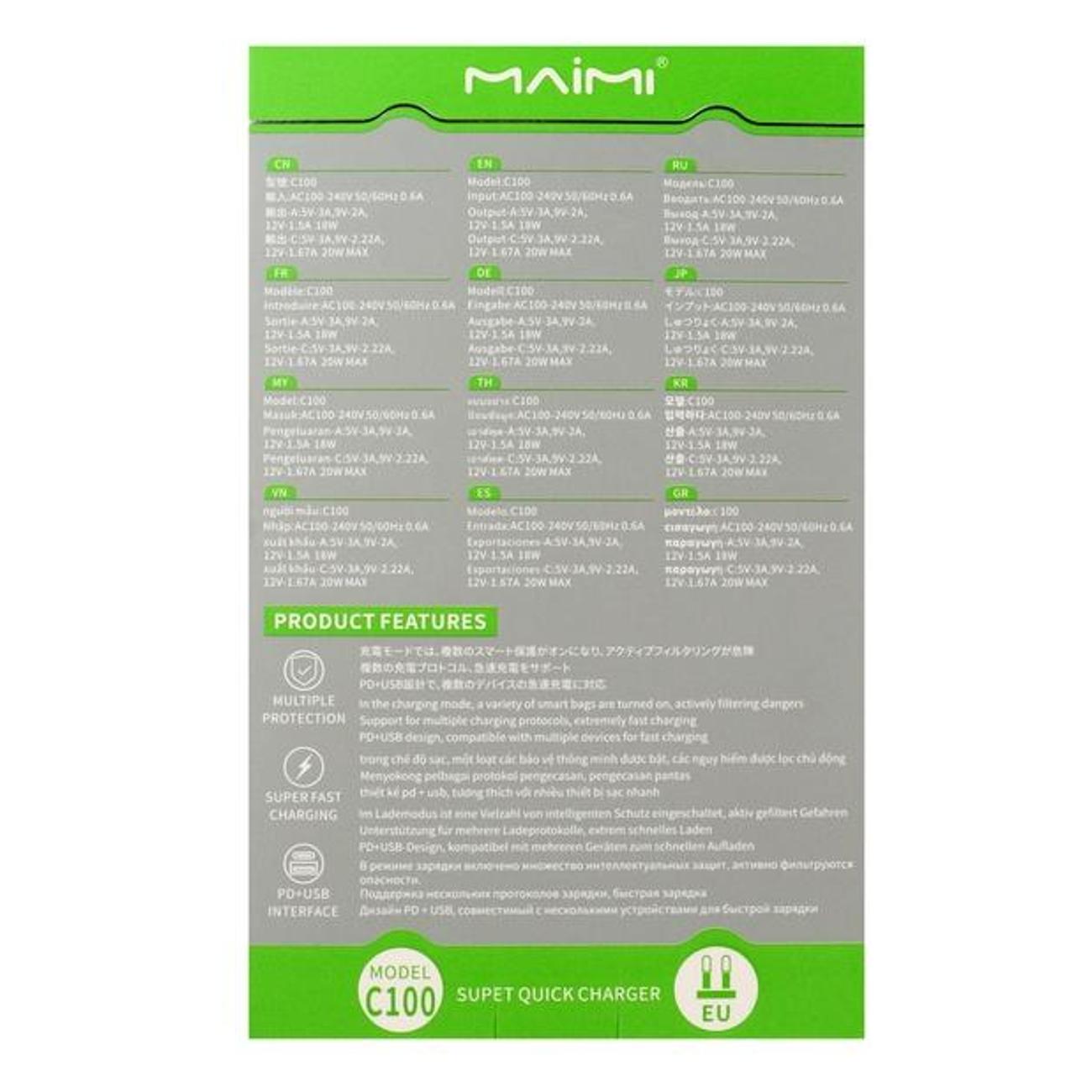 Вы можете купить Сетевое зарядное устройство Maimi Type-C Power Delivery C100 в магазинах М.Видео по доступной цене. Сетевое зарядное устройство Maimi Type-C Power Delivery C100: подробное описание, фото и отзывы реальных покупателей, характеристики, возможность скачать инструкции и подобрать аксессуары.
