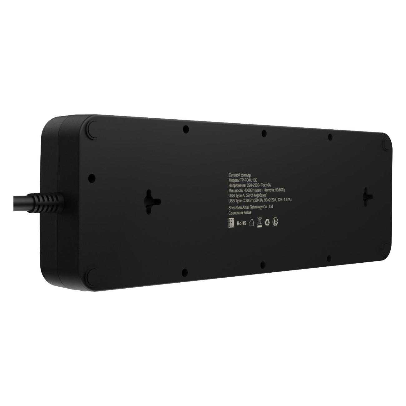 4 USB-разъёма (3 × Type-A и 1 × Type-C 20 Вт с поддержкой Power Delivery 3.0) обеспечивают суммарную мощность до 2400 мА и позволяют быстро заряжать смартфоны, планшеты и другую электронику. Подача тока активируется только при подключении устройства, что снижает энергопотребление и продлевает срок службы зарядного блока.