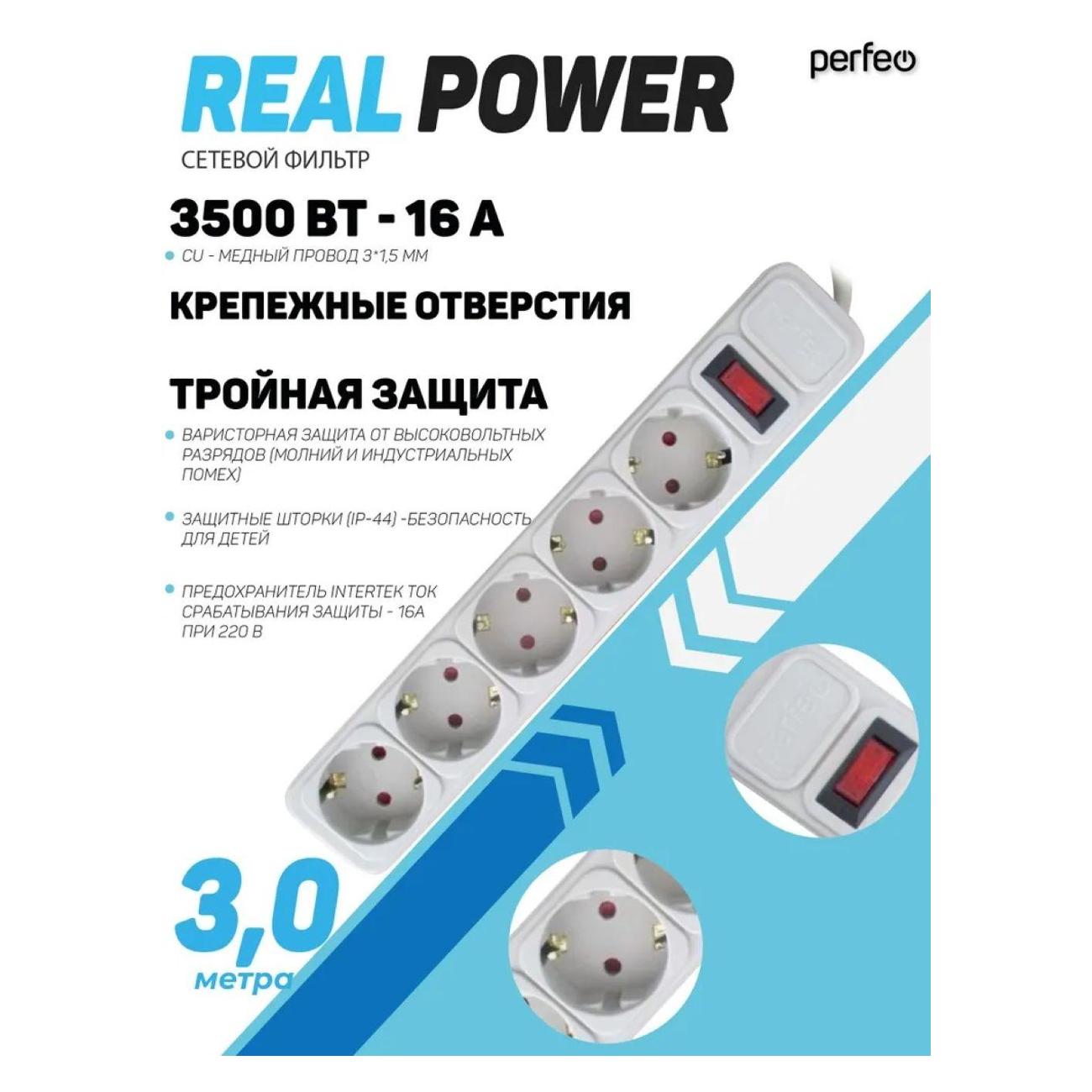 Вы можете купить Сетевой фильтр Perfeo Real Power 3м серый в магазинах М.Видео по доступной цене. Сетевой фильтр Perfeo Real Power 3м серый: подробное описание, фото и отзывы реальных покупателей, характеристики, возможность скачать инструкции и подобрать аксессуары.