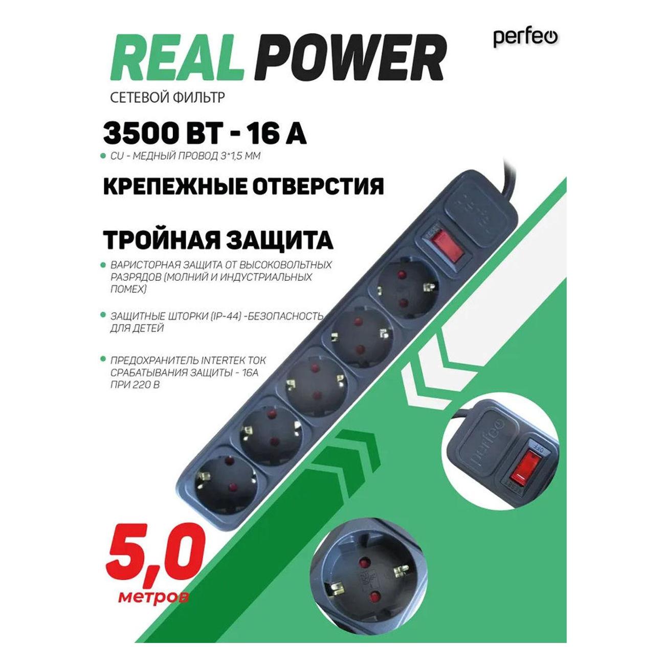 Вы можете купить Сетевой фильтр Perfeo Real Power 5м черный в магазинах М.Видео по доступной цене. Сетевой фильтр Perfeo Real Power 5м черный: подробное описание, фото и отзывы реальных покупателей, характеристики, возможность скачать инструкции и подобрать аксессуары.