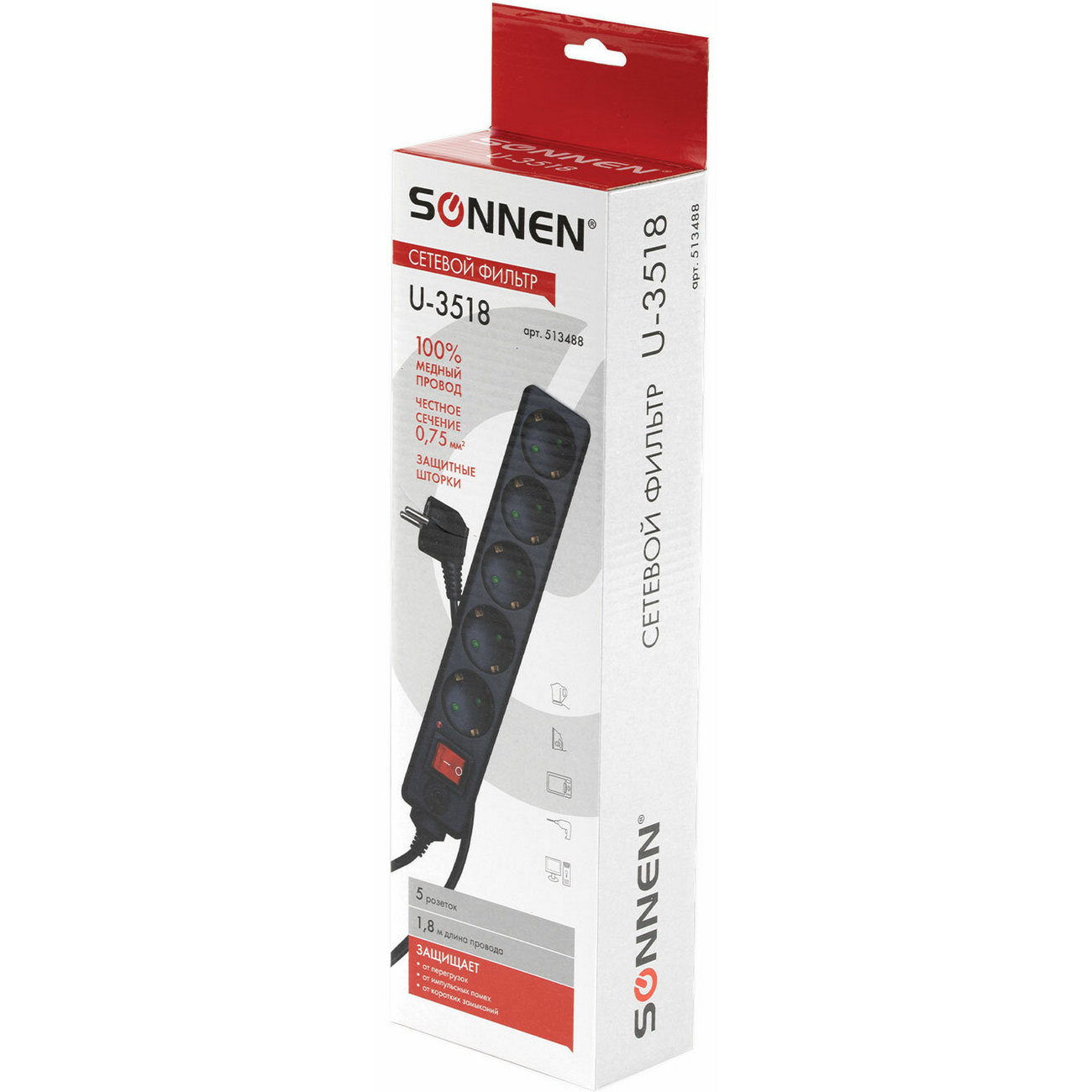 Вы можете купить Сетевой фильтр Sonnen U-3518 5 розеток 1,8м черн в магазинах М.Видео по доступной цене. Сетевой фильтр Sonnen U-3518 5 розеток 1,8м черн: подробное описание, фото и отзывы реальных покупателей, характеристики, возможность скачать инструкции и подобрать аксессуары.