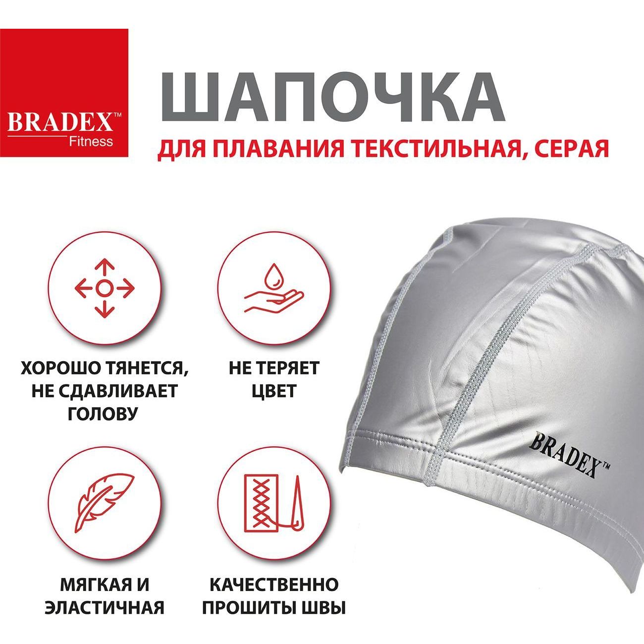 Вы можете купить Шапочка для плавания Bradex SF 0368 текстиль + ПУ, серая в магазинах М.Видео по доступной цене. Шапочка для плавания Bradex SF 0368 текстиль + ПУ, серая: подробное описание, фото и отзывы реальных покупателей, характеристики, возможность скачать инструкции и подобрать аксессуары.