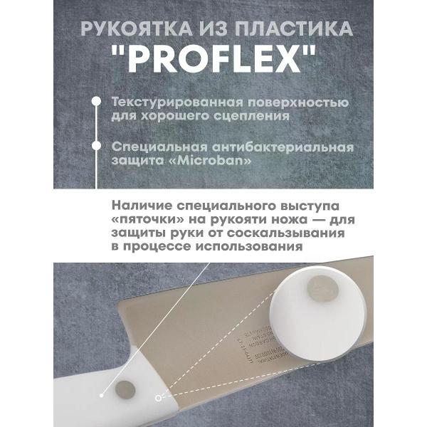 Сама рукоятка изготовлена из высокотехнологичного нескользящего пластика «Proflex Plus» со специальной антибактериальной защитой «Microban».