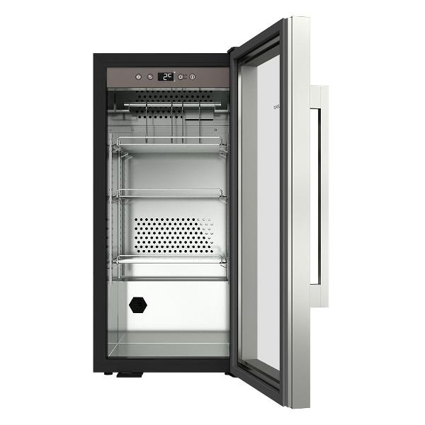 Габариты модели — 82х58х59,5 см. Вес изделия — 36 кг. Способ управления — сенсорный. Дверь сделана из стекла и металла с антикоррозийными свойствами, оснащена надежным замком. Вентилятор равномерно распределяет температуру по камере. Уровень шума не превышает 42 дБ.