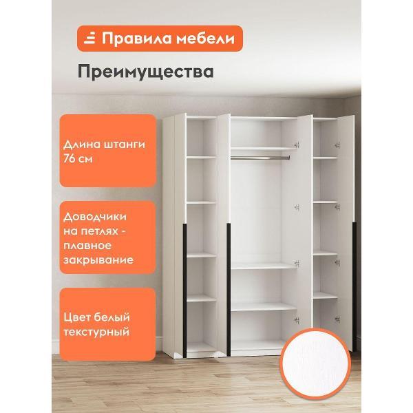 Шкаф Правила мебели Сеул с полками, со штангой, с доводчиками, 160.1х50.6х221.6 см, Белый текстурный