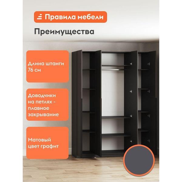 Шкаф Правила мебели Сеул с полками, со штангой, с доводчиками, 160.1х50.6х221.6 см, Графит