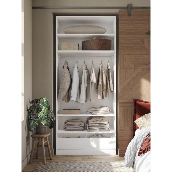 Вы можете купить Шкаф Правила мебели Стайл с полками, с ящиком, с продольной штангой, без дверей, 100х59х229.3 см, Белый в магазинах М.Видео по доступной цене. Шкаф Правила мебели Стайл с полками, с ящиком, с продольной штангой, без дверей, 100х59х229.3 см, Белый: подробное описание, фото и отзывы реальных покупателей, характеристики, возможность скачать инструкции и подобрать аксессуары.