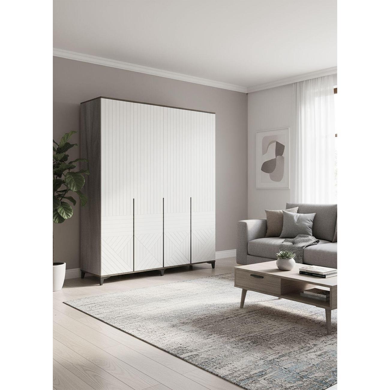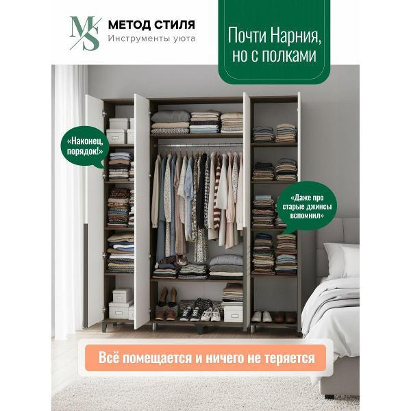 Этот напольный распашной шкаф идеально подходит для различных комнат, включая спальню, гостиную, детский уголок и прихожую. Модель с четырьмя створками и удобными полками обеспечивает вместительное хранение одежды, книг и других предметов. Благодаря универсальному дизайну шкаф гармонично впишется в интерьер кухни или ванной комнаты, а также станет практичным решением для балкона.