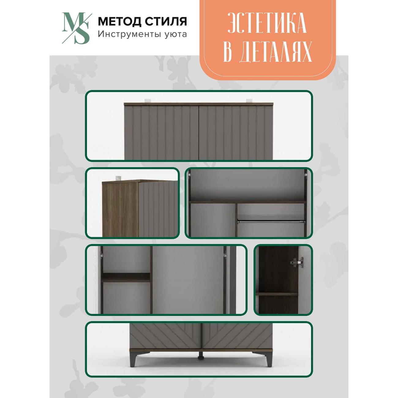 Мебель выполнена из качественных материалов — ЛДСП на корпусе и МДФ на фасадах, что гарантирует долговечность и простоту ухода. Цветовая гамма в серо-коричневых тонах создает атмосферу уюта и гармонично сочетается с разным интерьером. Этот шкаф идеально подойдет для хранения одежды, бытовых принадлежностей или других вещей, способствуя организации пространства в квартире.