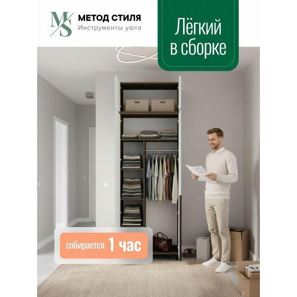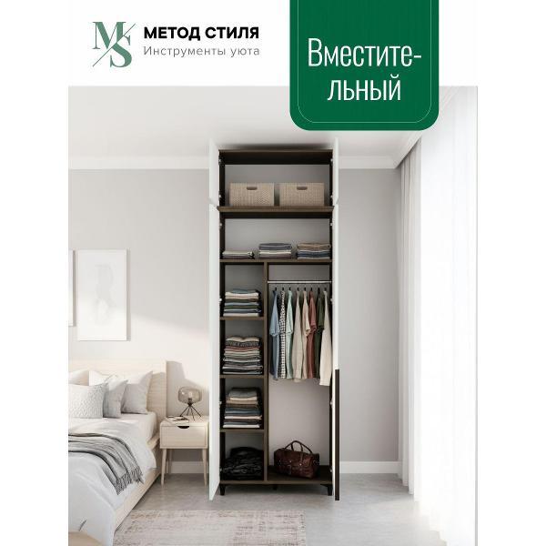 Удобная штанга предназначена для хранения верхней одежды, платьев, курток, рубашек и другой одежды. Полки позволяют хранить обувь, головные уборы, домашний текстиль, кухонную утварь или предметы, которые должны быть скрыты от глаз. Такой напольный шкаф для хранения вещей сочетается с другим деревянным гарнитуром, подходит для создания единого стиля или зонирования пространства.