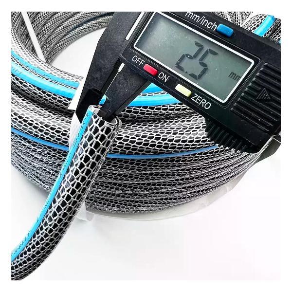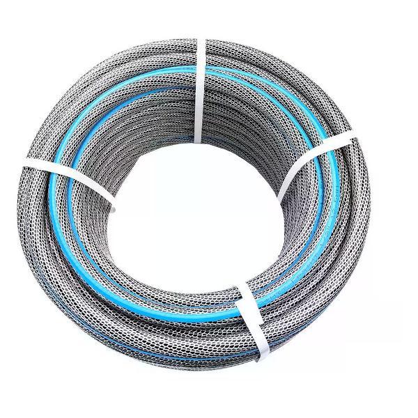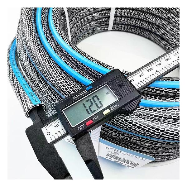 Садовый шланг ПРОФИтт NTS Графит 1/2" 50 м. Шланг ПРОФИтт NTS Графит применяется для полива приусадебных участков, питомников, садоводческих и фермерских хозяйств.Внутренний белый слой позволяет использовать при перекачке и подаче пищевой жидкости.Имеет армированное покрытие с запатентованной технологией NTS, которая позволяет шлангу сохранять устойчивость формы при высоком давлении и не перекручиваться.Не растягивается и не образует складки под давлением, обеспечивает постоянный поток воды. Диаметр шланга: 12-13 мм (1/2"); Длина (м): 50; Количество слоев: 5; Армированный: Да; Устойчивость к скручиванию: Да; Рабочее давление (Бар): 20; Температура применения (градус Цельсия): От -10 до +60; Цвет: Черный/Синий/Белый; Бренд: ПРОФИтт; Страна производства: Россия; Вес 8.1.Армированный резиновый шланг предназначен для использования как любителями, так и профессионалами в сфере садоводства. Это идеальное решение для полива ландшафтов любого уровня сложности, сельскохозяйственных угодий, промышленных зон, а также для наполнения декоративных водоемов и подачи питьевой воды с помощью насосных систем. Этот садовый шланг превосходно подходит для повседневной эксплуатации на протяжении десяти и более лет. Он отличается высокой гибкостью и надежностью, устойчив к перегибам. Благодаря своим уникальным свойствам, он подойдет для орошения садов любых размеров.К тому же, он оснащен анти-УФ-слоем, который обеспечивает защиту от выгорания на солнце. Дополнительно, непрозрачный средний слой предотвращает рост водорослей внутри изделия, что делает его еще более долговечным.