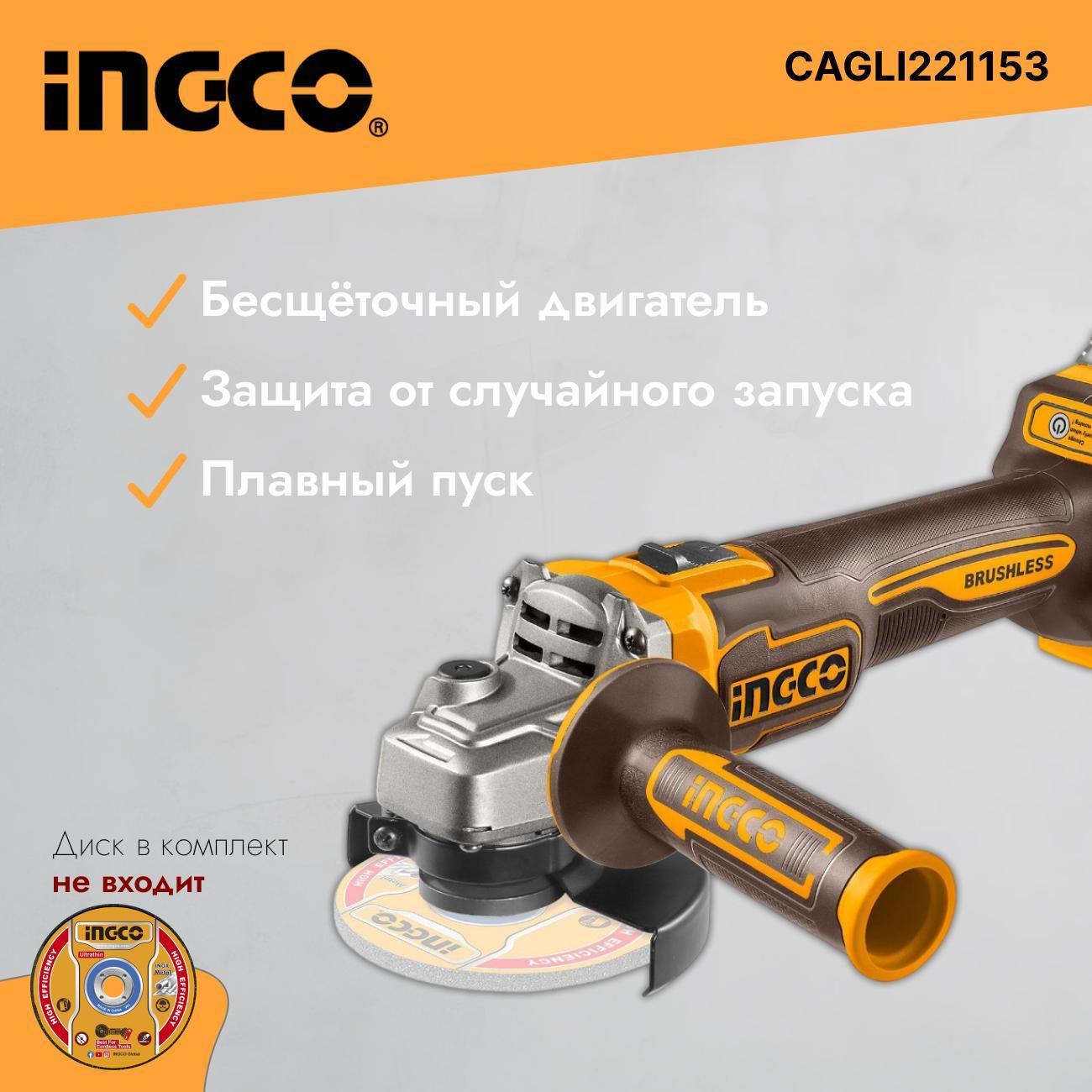 Вы можете купить Шлифмашина угловая (болгарка) INGCO CAGLI221153 в магазинах М.Видео по доступной цене. Шлифмашина угловая (болгарка) INGCO CAGLI221153: подробное описание, фото и отзывы реальных покупателей, характеристики, возможность скачать инструкции и подобрать аксессуары.