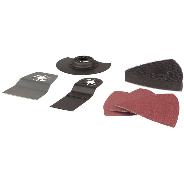 Вместе с прибором вы получаете жёсткий кейс, два прямых резака и полукруглую пилу, три листа наждачной бумаги с креплением-липучкой и скребок.