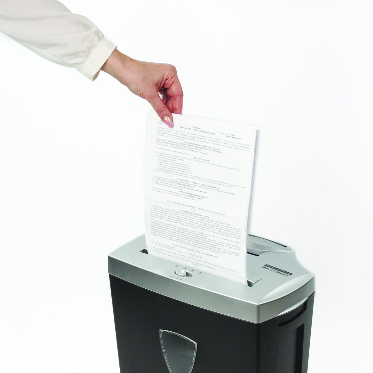 Резка производится на фрагменты размером 4 х 35 мм, что гарантирует уровень секретности P-4. Средняя скорость работы – 2 м в минуту. Удобство использования обеспечивает система автоматического включения. Приёмная корзина этой модели рассчитана на 25 листов формата А4, прозрачное смотровое окно позволяет контролировать её наполнение.