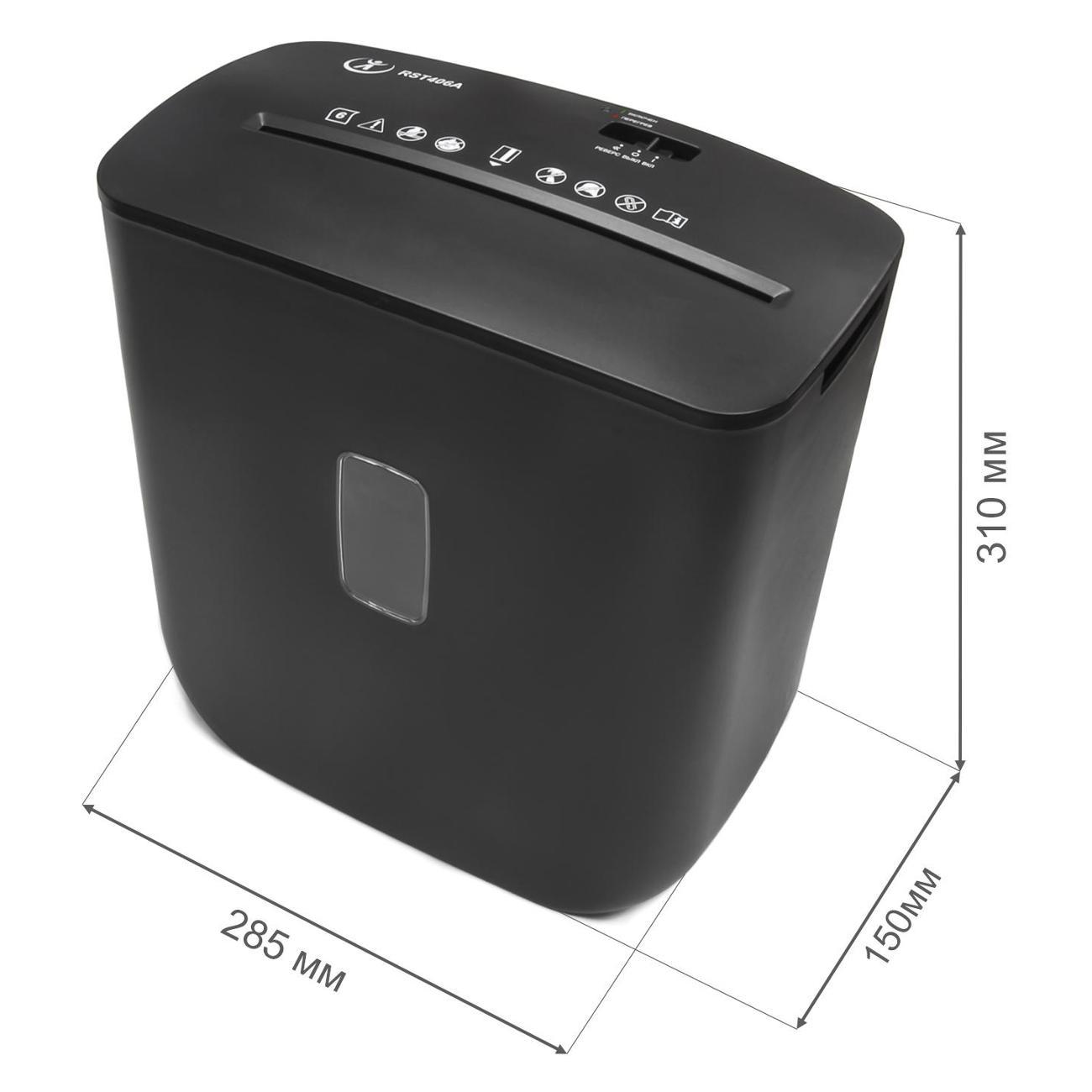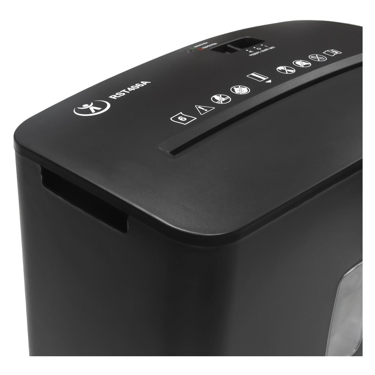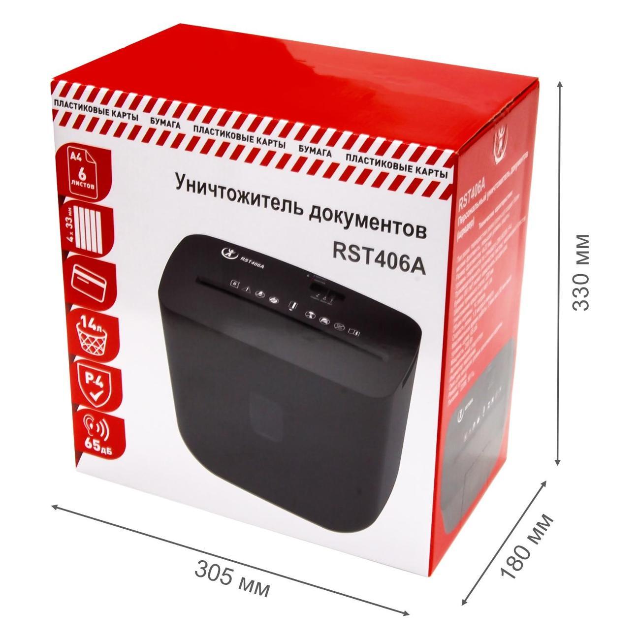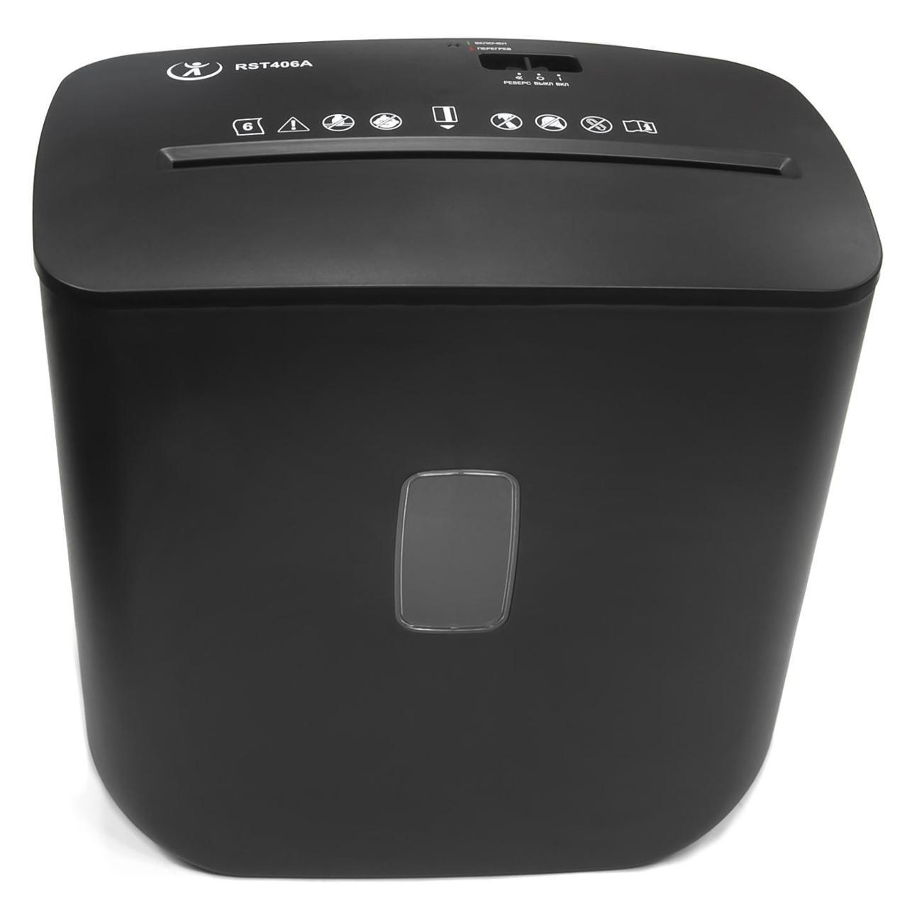 RST406A – достаточно мощный, простой и удобный в работе персональный уничтожитель документов. Режет бумагу и кредитные карты в крошку размером 4х33 мм. Для удаления мусора из корзины режущий механизм (режущую голову) легко снимать благодаря двум боковым выступам. Не требуется использования дополнительных пластиковых пакетов для мусора. Прозрачное окно на корзине помогает легко определить степень заполнения корзины бумажной крошкой. Степень секретности Р4 достаточно высокая - Документы с очень уязвимыми и конфиденциальными данными, а также персональными данными.Отлично подойдет для использования дома и в малых офисах.