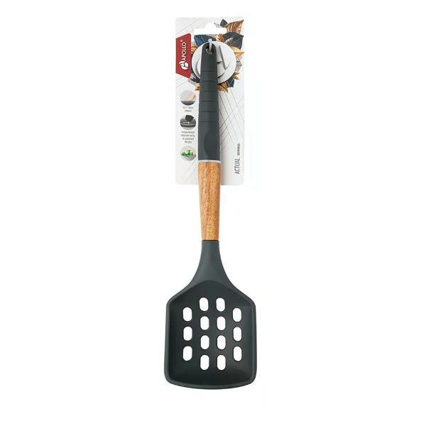 Шумовка APOLLO Actual силикон/бук. Шумовка APOLLO Actual выполнена из силикона со вставкой из натурального дерева.Предназначена для извлечения продуктов из супов и бульонов, а также для подачи готовых блюд.Особенности и преимущества:- оснащена прорезями, что позволяет стекать излишкам масла, соуса или жидкостей; - выдерживает высокие температуры до 270 °С;- не царапает антипригарное, тефлоновое, керамическое покрытие посуды;- на рукоятке изделия расположена силиконовая вставка, которая ограничивает скольжение шумовки в руке во время использования;- отверстие для подвешивания;- хорошо моется. Материал: Силикон, нейлон, дерево; Высота (см): 3.8; Ширина (см): 8; Длина (см): 32; Цвет: Темно-серый; Бренд: ; Страна производства: Китай; Вес : 0.112; Основной материал: Силикон
