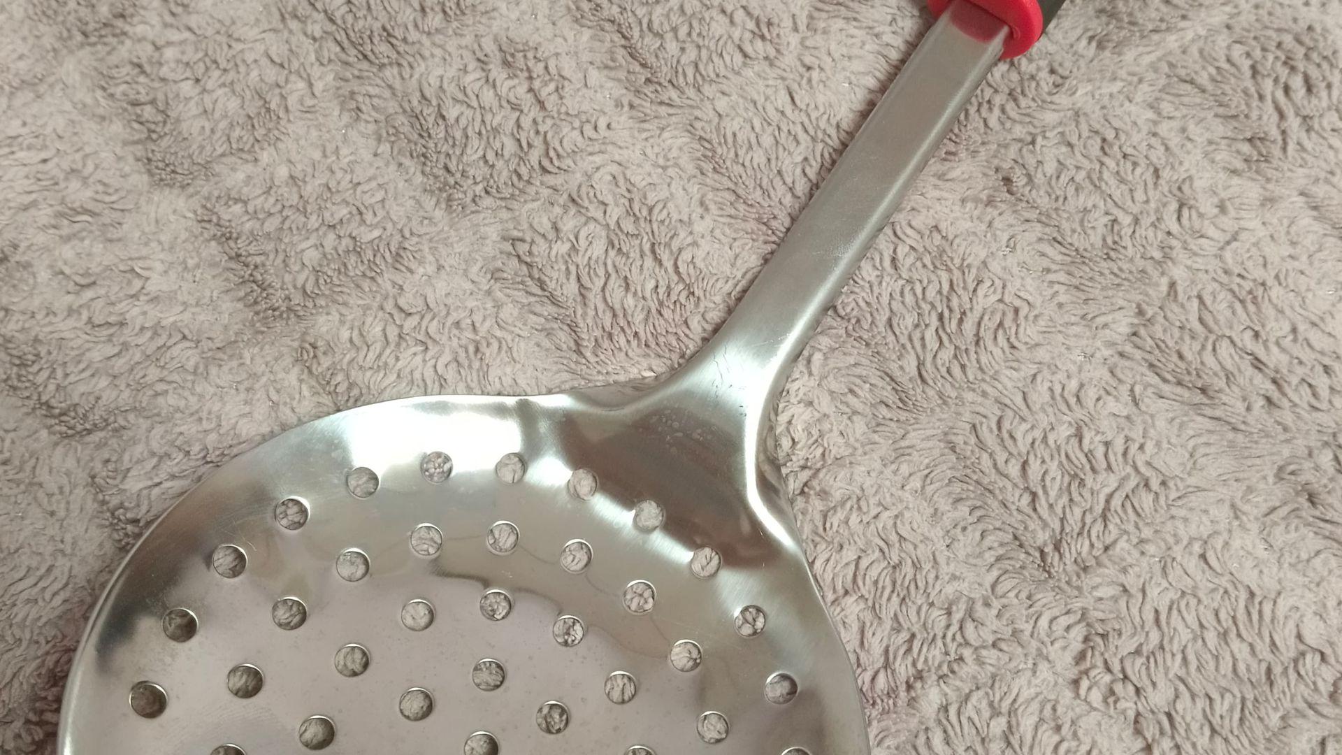 Обычная нормальная шумовка, легкая, удобно лежит в руке, ничего не прогибается. Некоторые пишут, что тонкий металл, металл тут достаточный с ребрами жесткости чтобы не гнуться и выполнять свою функцию, не кирпичи же ей перекладывать. Никаких претензий особо, с бонусами вышла по отличной цене.