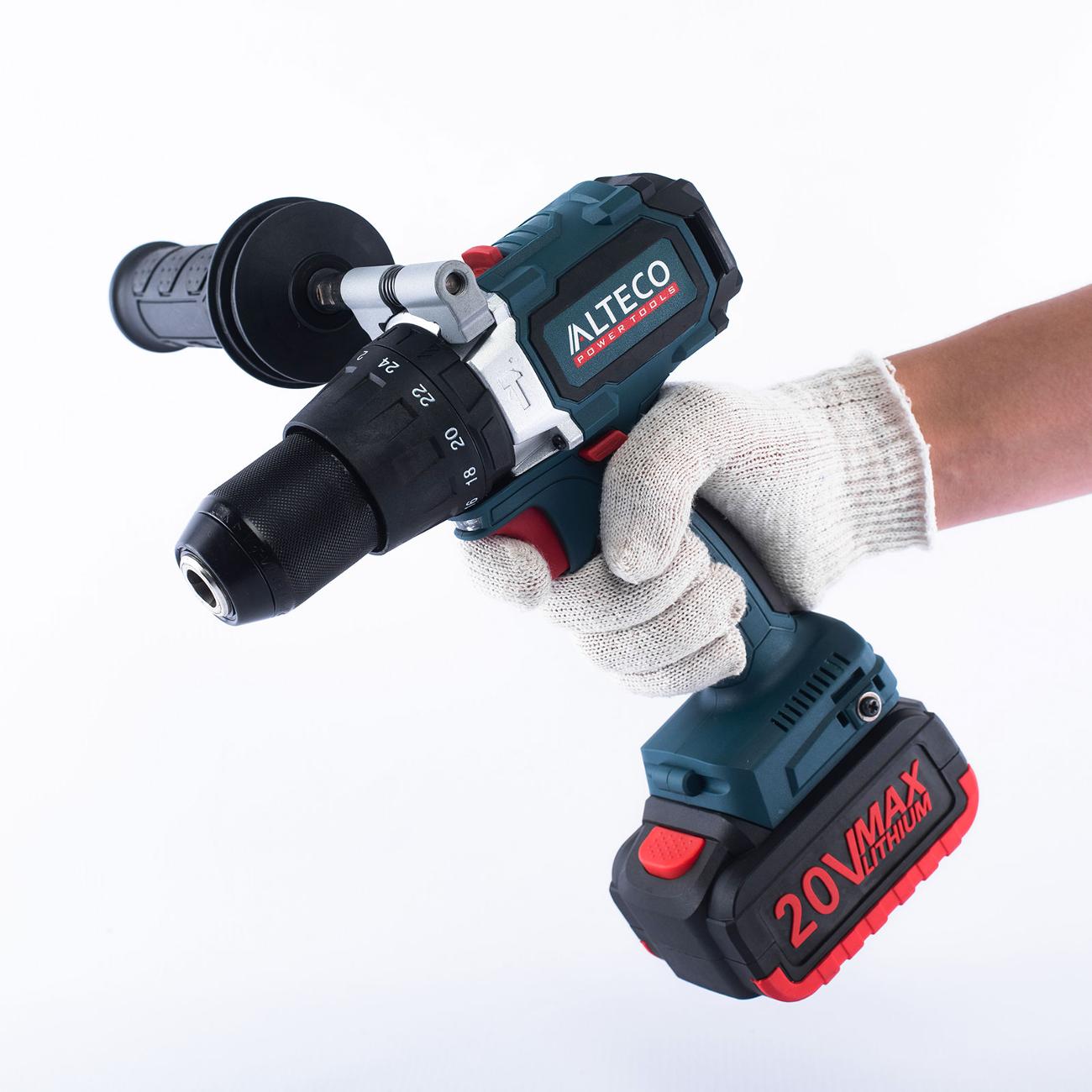 Аккумуляторный шуруповерт Alteco CID 2013 Li работает в двух скоростях и трех режимах — закручивания, реверса и сверления с ударом. Частота вращения регулируется электронным способом. Прорезиненная ручка удобно лежит в ладони, исключает скольжение. Источник питания — литий-ионный аккумулятор емкостью 3 А*ч. Батарея заряжается от сети переменного тока за 60 минут. Подсветка позволяет вести работы даже в условиях недостаточной видимости.