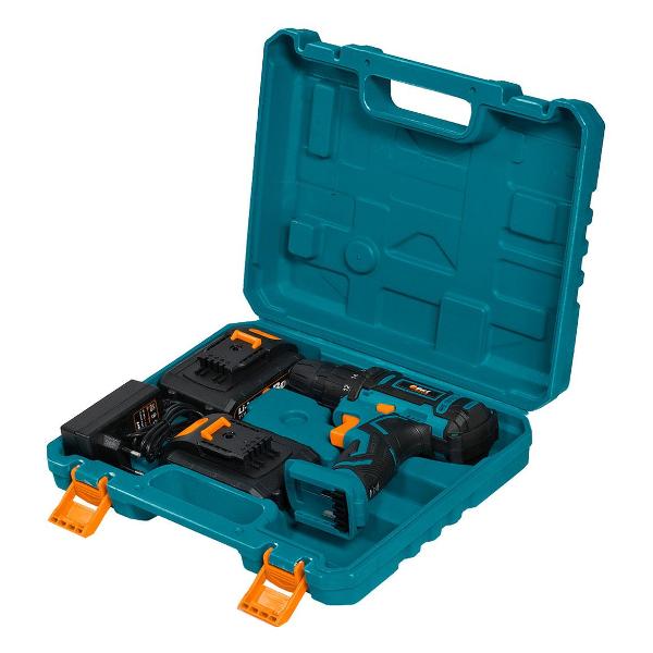 Особенность модели — наличие двадцати ступеней крутящего момента и функции «сверление». Регулировка оборотов, реверс, прорезиненная ручка обеспечивают комфорт во время работы. Инструмент имеет подсветку рабочей зоны и лампу точечной подсветки для удобства использования в условиях недостаточной освещенности. Цвет — черный/голубой. Материал корпуса — пластик. Вес — 1,4 кг. Страна-производитель — Китай. Гарантийный срок — два года.