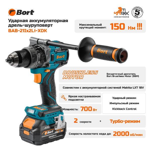 Вы можете купить Шуруповерт аккумуляторный Bort BAB-21Ix2Li-XDK (2x4Ач+ЗУ) в магазинах М.Видео по доступной цене. Шуруповерт аккумуляторный Bort BAB-21Ix2Li-XDK (2x4Ач+ЗУ): подробное описание, фото и отзывы реальных покупателей, характеристики, возможность скачать инструкции и подобрать аксессуары.