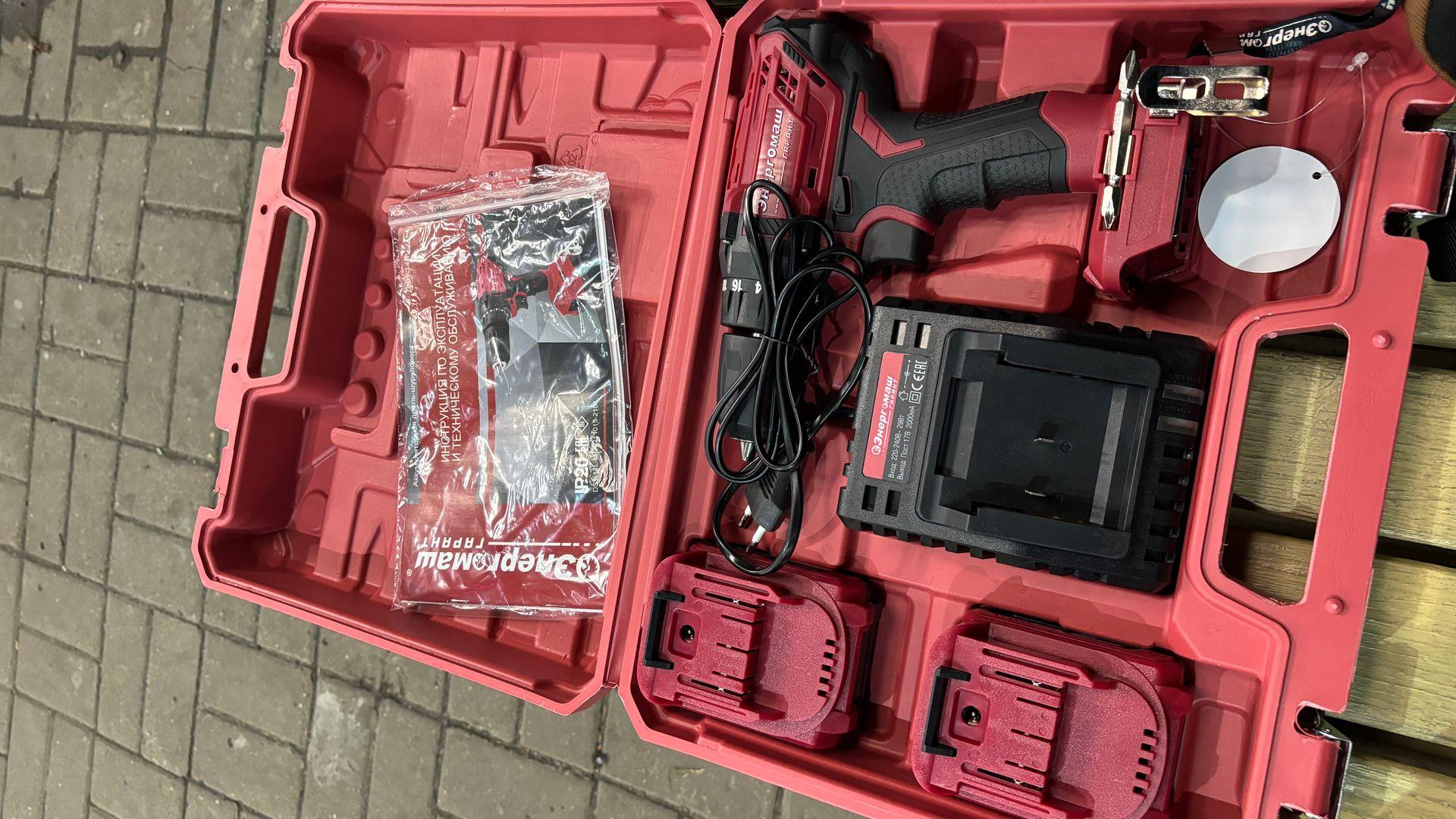 Удобный кейс для хранения, два аккумулятора, в руке лежит идеально, удобный и простой в использовании, еще я очень доволен, что повезло мне купить этот шуруповерт с 50% скидкой, готов купить еще, пусть будет, рекомендую, не пожалеете, тем более за цену с такой скидкой.