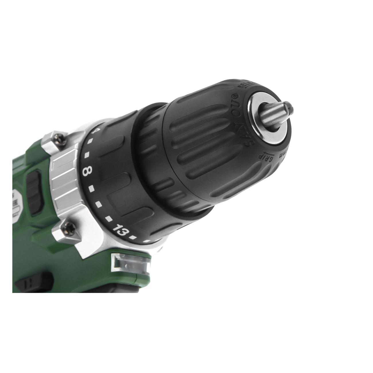 Устройство оборудовано быстрозажимным патроном диаметром 10 мм. Диапазон сверления — от 8 до 25 мм для металла и дерева соответственно. При работе дрель производит шум до 87,1 дБ.