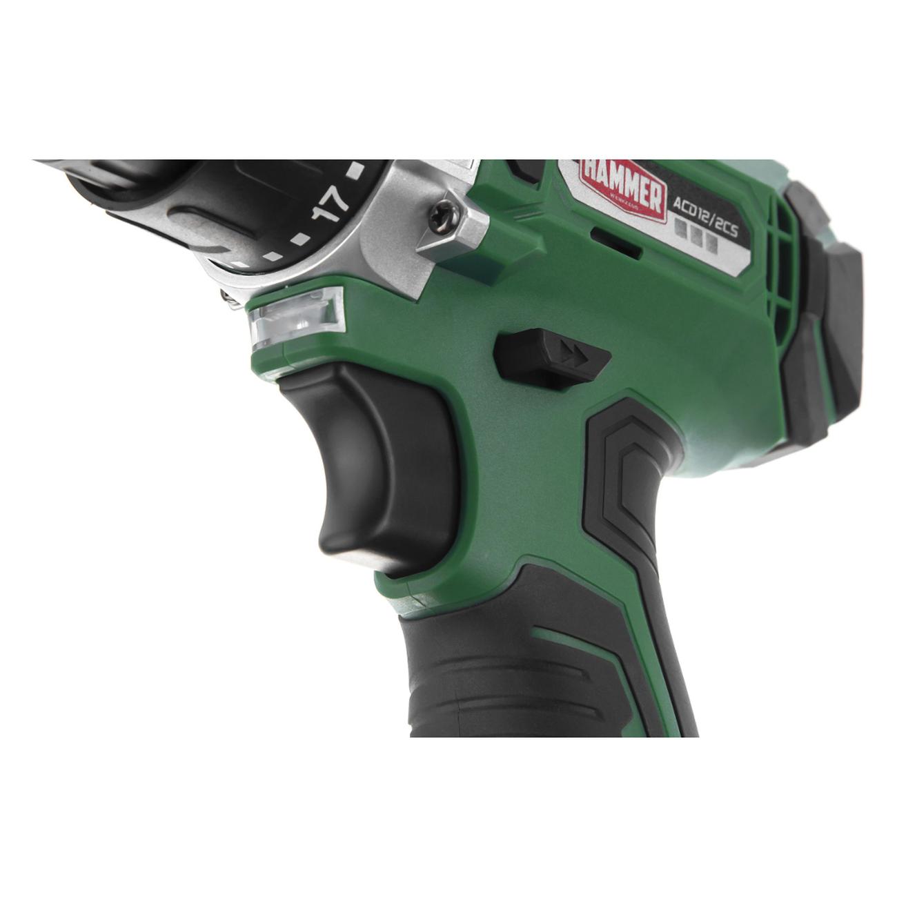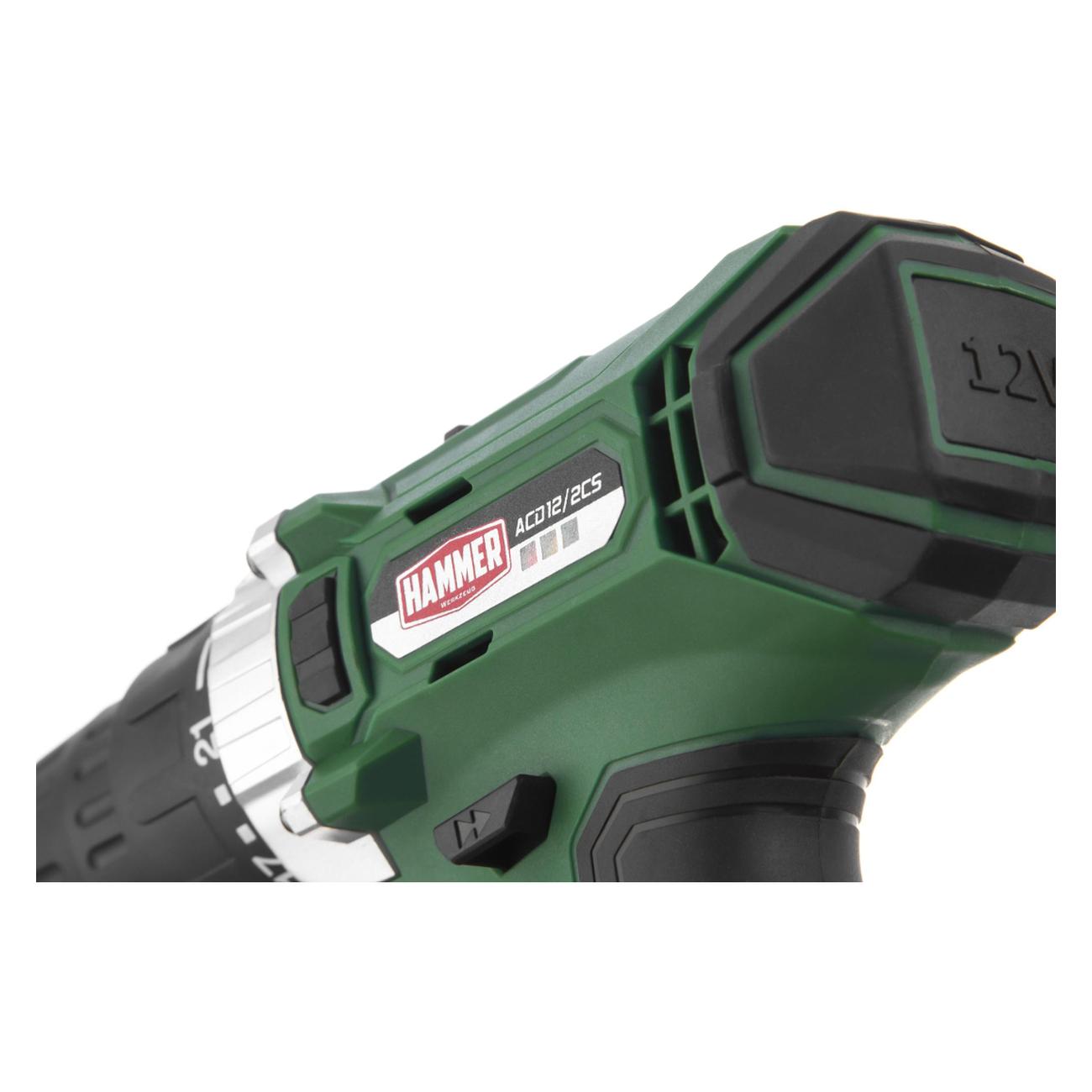 Дрель аккумуляторная Hammer ACD12CS оснащена щеточным двигателем и литиево-ионным аккумулятором емкостью 1,5 А*ч и напряжением 12 В. Для полной зарядки одного аккумулятора требуется 180 минут. Максимальное число оборотов дрели достигает 1400 в минуту. Количество можно регулировать. Модель также оснащена функцией реверса. Крутящий момент инструмента — 22 ступени, достигает величины 26 Н*м.