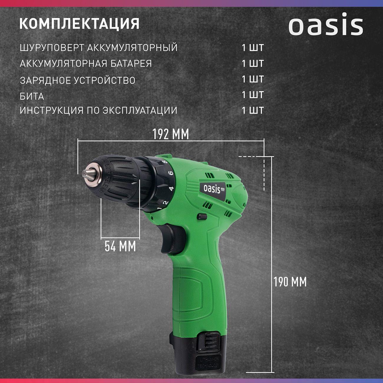 Вы можете купить Шуруповерт аккумуляторный Oasis Eco AS-12V в магазинах М.Видео по доступной цене. Шуруповерт аккумуляторный Oasis Eco AS-12V: подробное описание, фото и отзывы реальных покупателей, характеристики, возможность скачать инструкции и подобрать аксессуары.