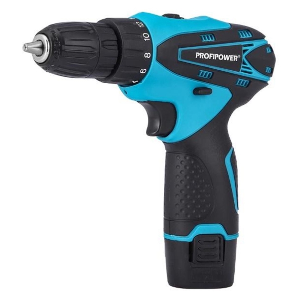 Аккумуляторный шуруповерт ProfiPower MK-12В на основе щеточного двигателя обеспечивает 1300 оборотов в минуту. Модель поддерживает реверс, долбление, сверление и заворачивание шурупов. Предусмотрено сверление с ударом. Уровень шума не превышает 80 дБ во время функционирования. Инструмент питается от литий-ионного аккумулятора емкостью 1500 мА*ч, который выдерживает до 1 ч работы. В комплект входит кейс, зарядное устройство и дополнительный аккумулятор. Диаметр отверстия по металлу составляет до 10 мм, по дереву — 20 мм.