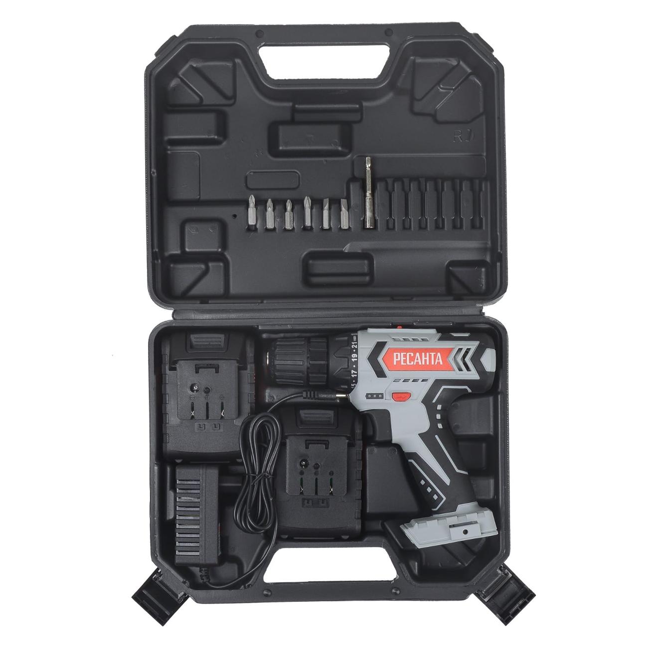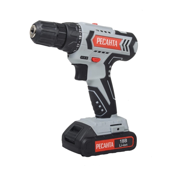 Инструмент с двумя скоростями работы функционирует от сети питания и автономно. Аккумулятор типа Li-ion восполняет энергию через зарядное устройство. Корпус изготовлен из пластика и металла, поэтому устойчив к повреждениям и деформации. Быстрозажимной патрон обеспечивает быструю замену оснастки.