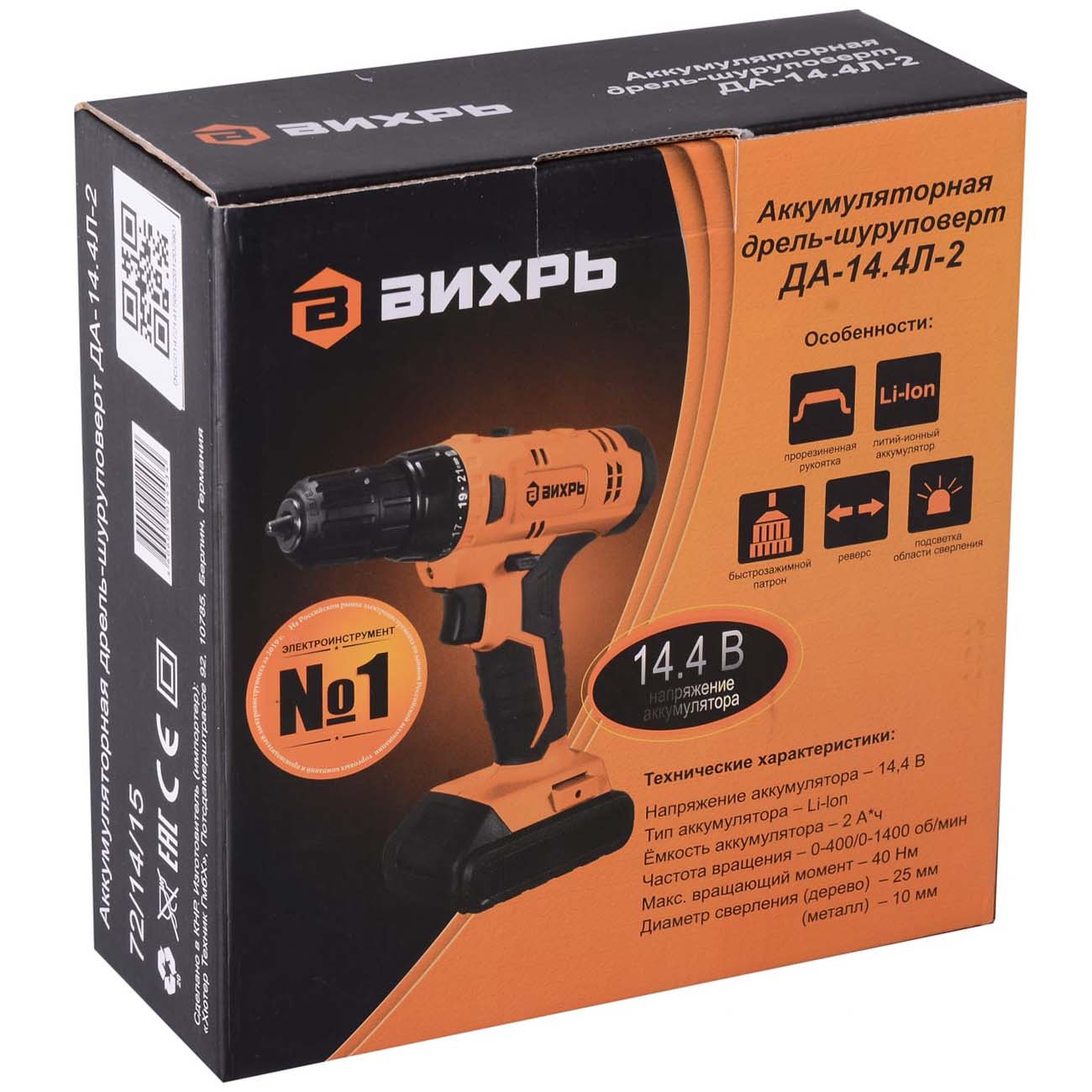 Аккумуляторный шуруповерт «Вихрь» ДА-14, 4Л-2 предназначен для установки крепежных элементов и проделывания отверстий в различных материалах. Максимальный диаметр сверления в металле составляет 10 мм, в древесине — 25 мм. Функция обратного вращения позволит без труда извлечь застрявшую в заготовке оснастку.