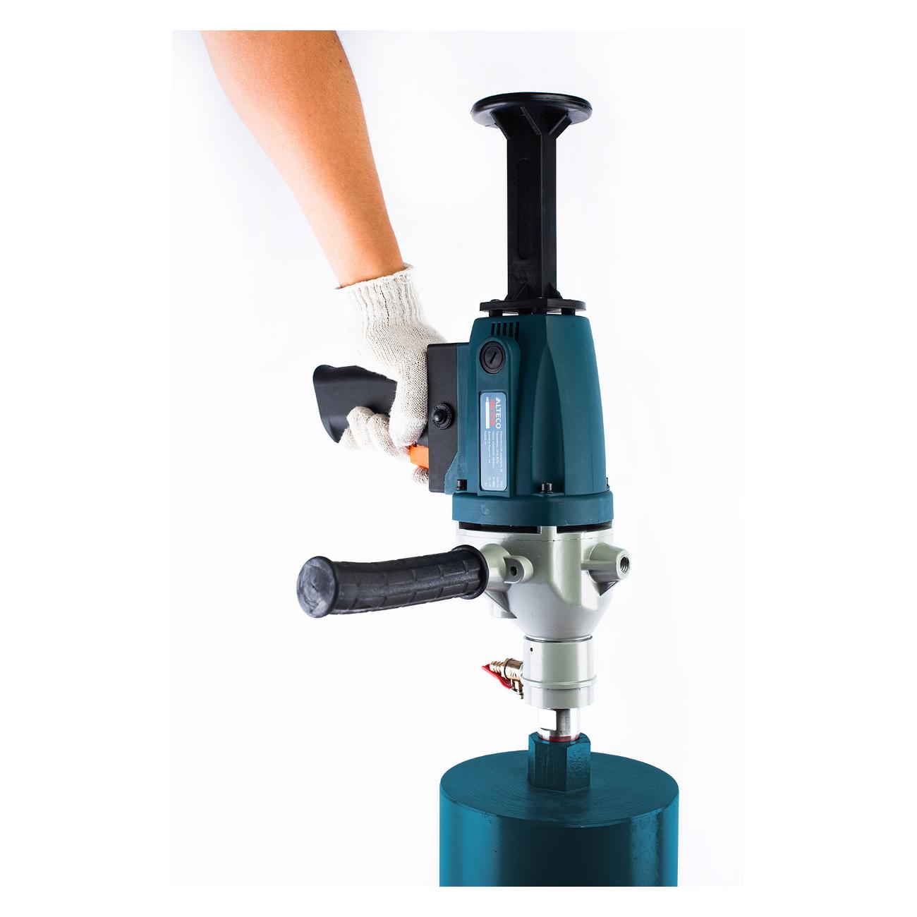 Электрическая дрель Alteco DD 1713 способна проделывать отверстия максимальным диаметром 135 мм в бетонных и металлических основаниях. Оборудована прорезиненной ручкой, за счет чего не скользит в руках во время работы. Число оборотом можно регулировать до значения 1800 об/мин. Устройство оснащено защитой от перегрузок.