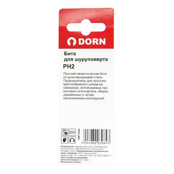Биты DORN PH2, 70 мм 2 шт. Биты DORN TRP17034 используются в качестве сменных насадок с шуруповертами и отвертками. Особенности и преимущества:- удлинённая конструкция идеальна для труднодоступных мест и глубоких отверстий;- максимальная длина помогает избегать усталости рук и снижает нагрузку на инструмент;- стальная основа делает изделие устойчивым к сильным ударам и повышенным нагрузкам; - прочная фиксирующая насечка обеспечивает надёжное удерживание крепежей всех форматов;- универсальность применима ко многим видам строительного оборудования и бытового инструмента.. Вид насадки: PH2; Бренд: ; Длина (мм): 70; Магнитный наконечник: Да; Подходит для ударных шуруповертов: Нет; Хвостовик: Шестигранный, 1/4"; Количество в упаковке (шт): 2; Страна производства: Китай; Вес : 0.06
