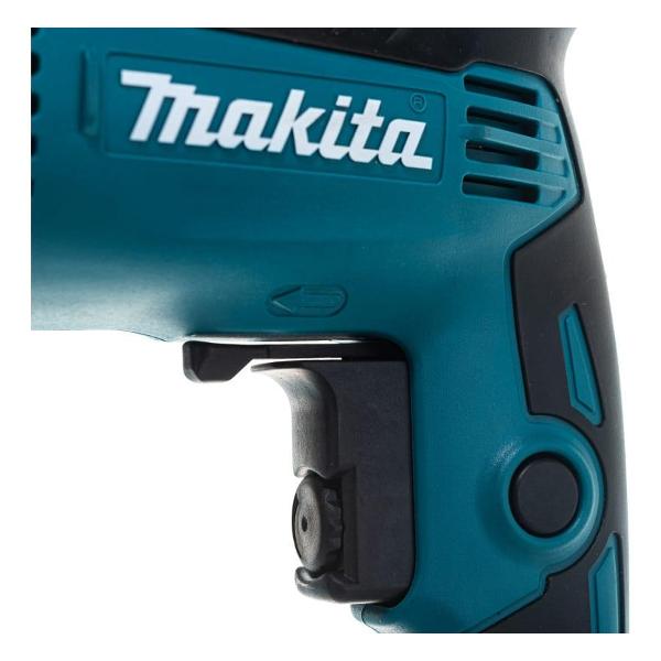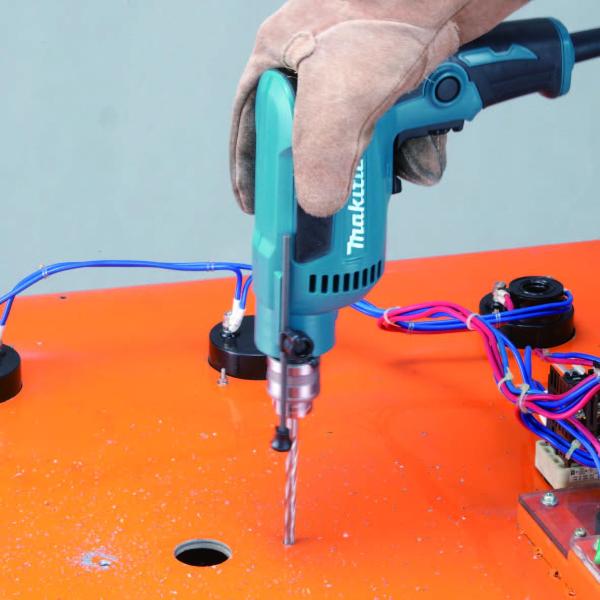 Электрическая дрель Makita DP 2010 — инструмент с электронной регулировкой оборотов и функцией реверса. Большой курковый выключатель обеспечивает удобство эксплуатации устройства. Рукоятка с резиновыми накладками не выскальзывает из ладони. Наличие вентиляционных отверстий в корпусе (выполнен из пластика) улучшает отвод тепла от двигателя. Инструмент оснащен ключевым патроном. Максимальный диаметр сверления в дереве достигает 15 мм, в металле и бетоне — 6,5 мм. Число оборотов — до 4200 в мин.