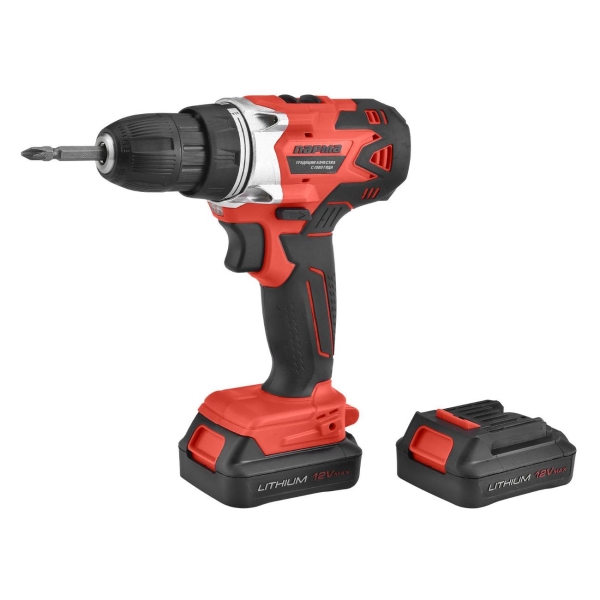Быстрозажимной патрон позволяет менять оснастку за несколько секунд. Корпус выполнен из ударопрочного пластика. Инструмент получает питание от съемного литий-ионного аккумулятора емкостью 1300 мА*ч напряжением 12 В. В комплекте — две батареи. На подпитку одной требуется не более часа. Прибор хранится в специальном кейсе.