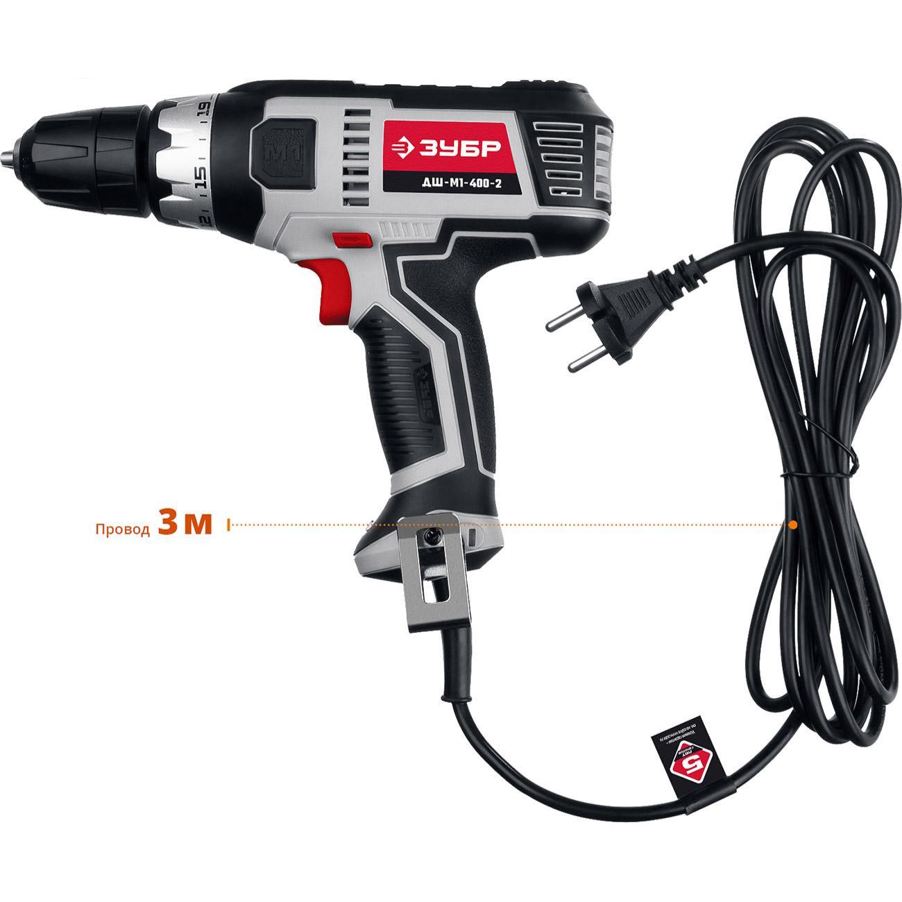 Дрель электрическая Зубр ДШ-М1-400-2 предназначена для сверления и заворачивания шурупов. Класс инструмента — бытовой. Имеет две скорости работы (450-1800 об/мин), 20 ступеней крутящего момента и быстрозажимной патрон диаметром 0,8-10 мм. Максимальное число оборотов — 1800 об/мин. Тип двигателя — щеточный. Работает от сети 220 В. В комплекте сетевой кабель длиной 3 м. Предохранительная муфта защищает от случайного включения, лампа точечной подсветки помогает при работе в условиях недостаточного освещения.