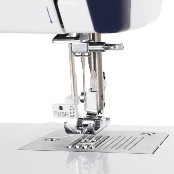 Купила машинку две недели назад не нарадуюсь, все замечательно, сначала огорчилась, что в комплекте нет дополнительных лапок, а потом нашла и оказались недорогие 150-200 руб.,все функции устраивают, боялась что не разберусь, но все-таки для некоторых нужен навык, не сразу получается, еще хочу лапку для кожи, я думаю она справиться с плотной тканью со специальной лапкой и иглой.