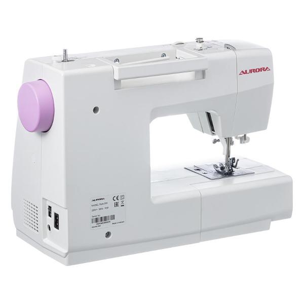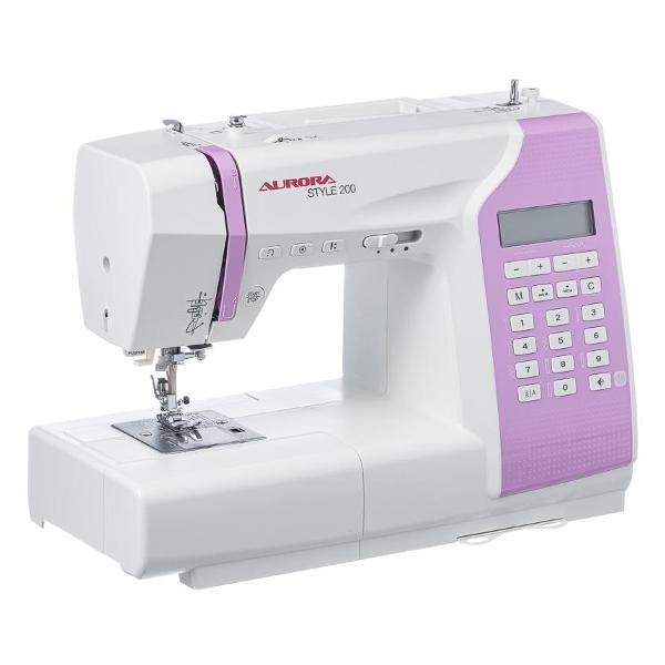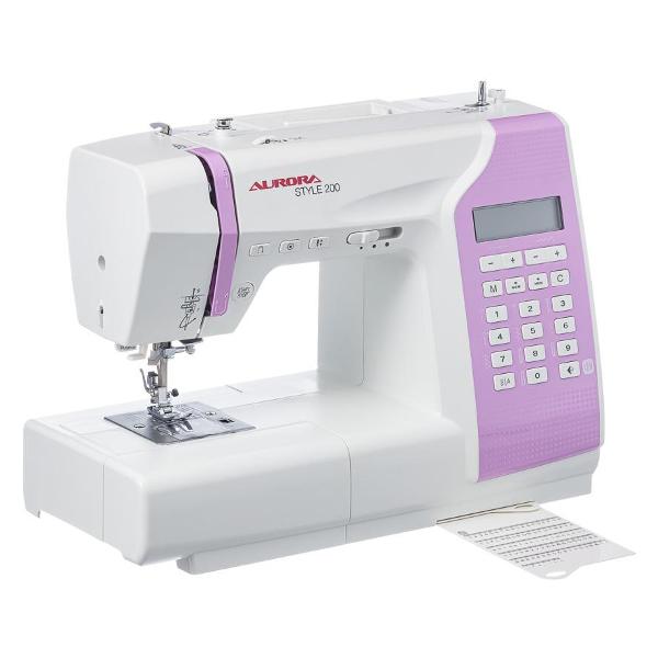 Швейная машина Aurora Style 200 — модель в пластиковом корпусе с электронным управлением. Возможна работа с педалью и без нее. Длина кабеля составляет 1 м. На внешней части конструкции предусмотрен кнопочный модуль с дисплеем, который дает возможность выбрать одну из 197 операций, установить длину и ширину стежка до 5 мм и 7 мм соответственно. Максимальный подъем лапки может достигать 11 мм. Количество доступных петель — семь.