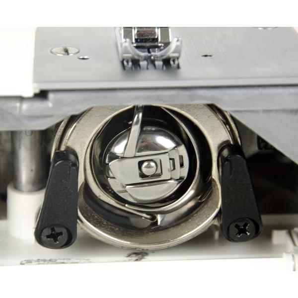 Зубчатая рейка состоит из шести сегментов. Для закрепления строчки предназначен рычаг реверса — обратного хода. Лапка поднимается на 10 мм, что позволяет сшивать плотные ткани в несколько слоев. Предусмотрена рукавная панель, помогающая обрабатывать не только рукава, но и штанины, манжеты и другие узкие детали кроя. Максимальная длина стежка — 4 мм, ширина — 5 мм (регулируются). Светодиодная подсветка яркая и экономичная, упрощает работу.