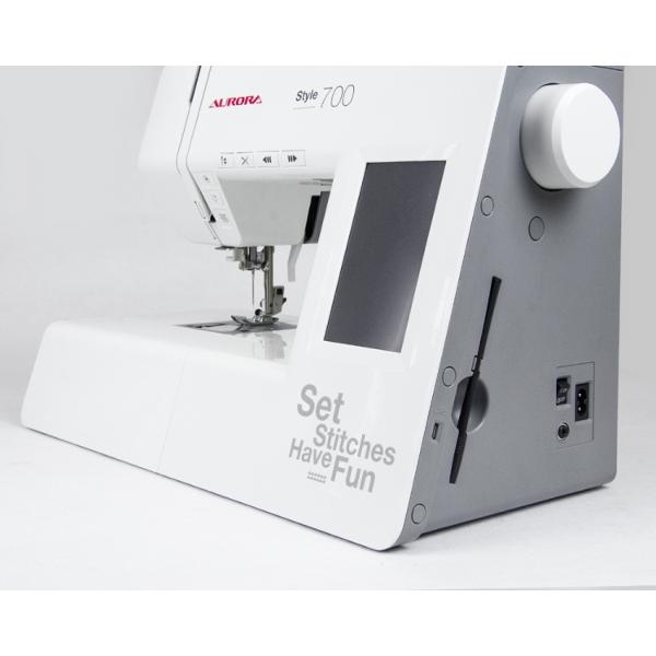 Швейная машина Aurora Style 700 действует со скоростью до 700 стежков/мин и подойдет новичкам и профессионалам. Модель управляется электронными кнопками, находящимися спереди. Можно выбрать одну из 700 операций, установить подходящую высоту подъема лапки, один из семи видов петель. Устройство потребляет до 70 Вт электроэнергии.