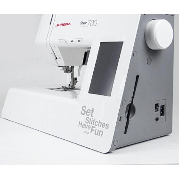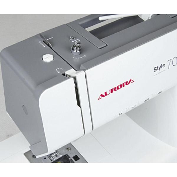 Швейная машина Aurora Style 700 оборудована сенсорным управлением и светодиодным освещением. Челнок располагается горизонтально. Используются иглы типа 130/705H. Максимальная скорость шитья составляет 700 стеж/мин. В набор включены 8 лапок и 3 шпульки. Предусмотрены регулировка скорости шитья, длины стежка, высоты подъема лапки.