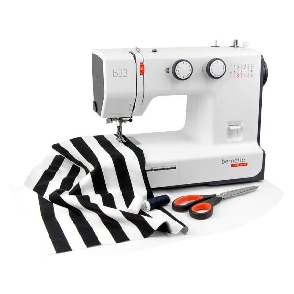 Швейная машина Bernette B33 может выполнять 15 швейных операций, что позволяет подшить брюки или сшить новое платье. В комплекте пять лапок для комфортного шитья, которые легко заменяются одним нажатием. Три шпульки позволяют использовать разные нитки, что ускоряет процесс создания одежды. За счет автоматической остановки намотки нитка легко наматывается на шпульку.