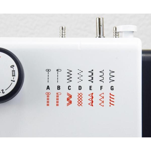 Функция реверса предотвращает застревание иглы в ткани. Нитка легко вдевается в иглу за счет полуавтоматического нитевдевателя. Модель подходит для пошива одежды из легкого, среднего и плотного материала. Скорость шитья удобно регулируется нажатием на педаль.