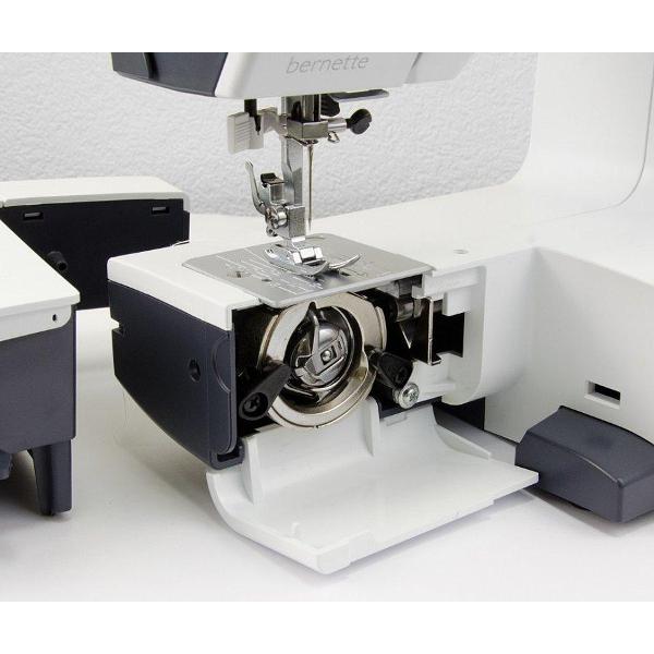 Швейная машина Bernette B33 может выполнять 15 швейных операций, что позволяет подшить брюки или сшить новое платье. В комплекте пять лапок для комфортного шитья, которые легко заменяются одним нажатием. Три шпульки позволяют использовать разные нитки, что ускоряет процесс создания одежды. За счет автоматической остановки намотки нитка легко наматывается на шпульку.