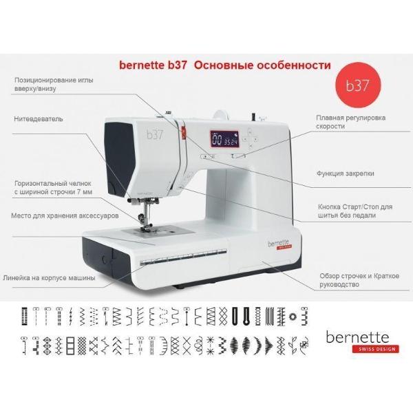 Швейная машина Bernette B37 может выполнять 50 швейных операций, что позволяет подшить брюки или сшить новое платье. В комплекте пять лапок для комфортного шитья, которые легко заменяются одним нажатием. Четыре шпульки позволяют использовать разные нитки, что ускоряет процесс создания одежды.