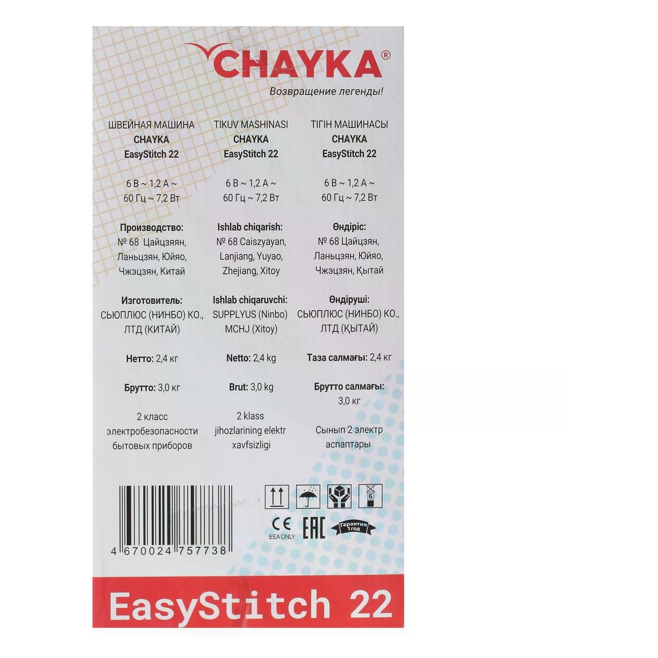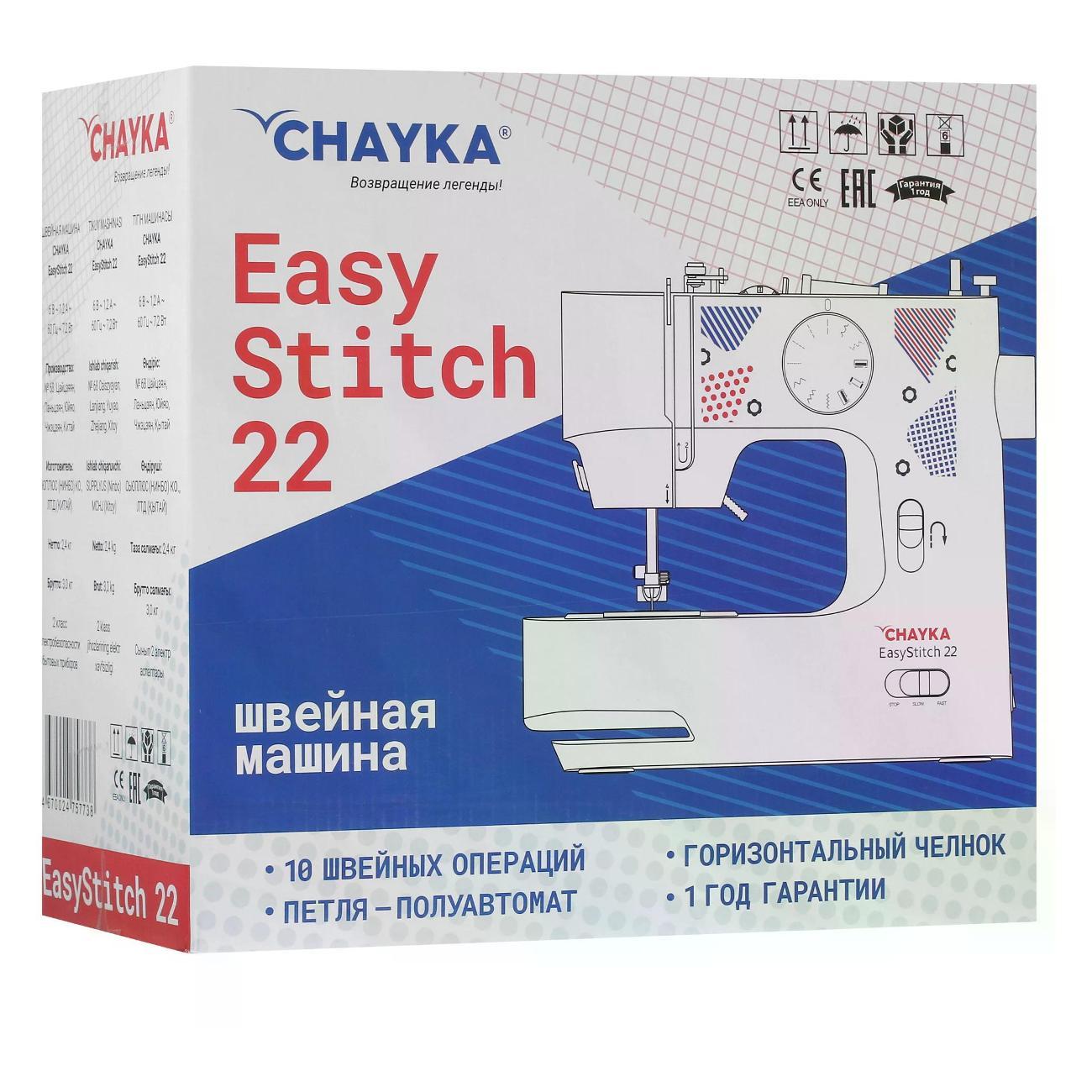 Вы можете купить Швейная машина CHAYKA EasyStitch 22 White в магазинах М.Видео по доступной цене. Швейная машина CHAYKA EasyStitch 22 White: подробное описание, фото и отзывы реальных покупателей, характеристики, возможность скачать инструкции и подобрать аксессуары.