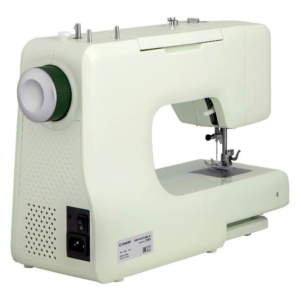 Швейная машина Comfort 1030 устойчиво держится на столе благодаря ножкам с нескользящим покрытием. Механическими регуляторами, расположенными спереди, можно выбрать одну из 24 операций, требуемую трикотажную, оверлочную, рабочую, потайную строчку, отрегулировать параметры зигзага и стежка, уровень давления и высоту подъема лапки.